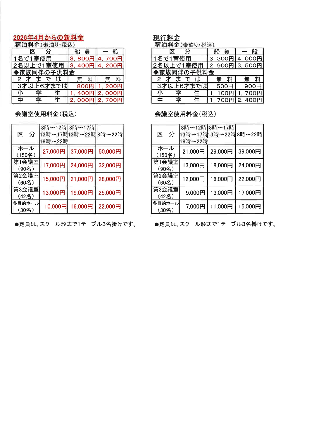 この度、当会館の環境維持・改善に伴う設備投資ならびに継続的な成長と安定経営を図るため、2026年4月1日より、宿泊料金及び会議室料金を改定させていただくこととなりました。